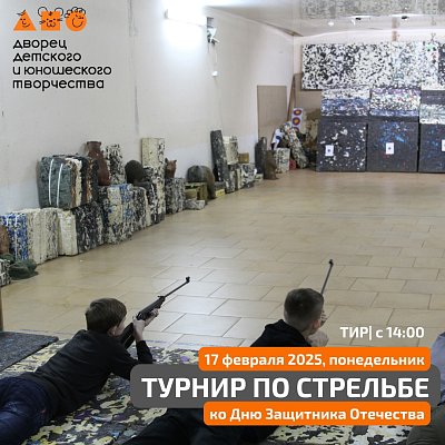 Приглашаем принять участие в Открытом турнире по стрельбе, посвященном Дню защитника Отечества. В соревнованиях могут принять участие дети из любых объединений, а также родители учащихся.
