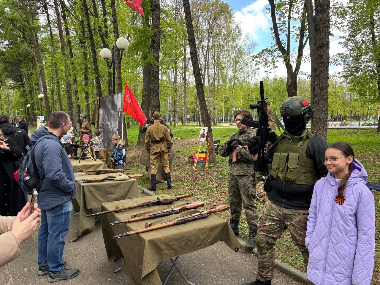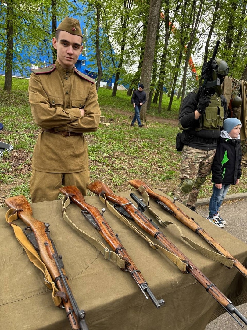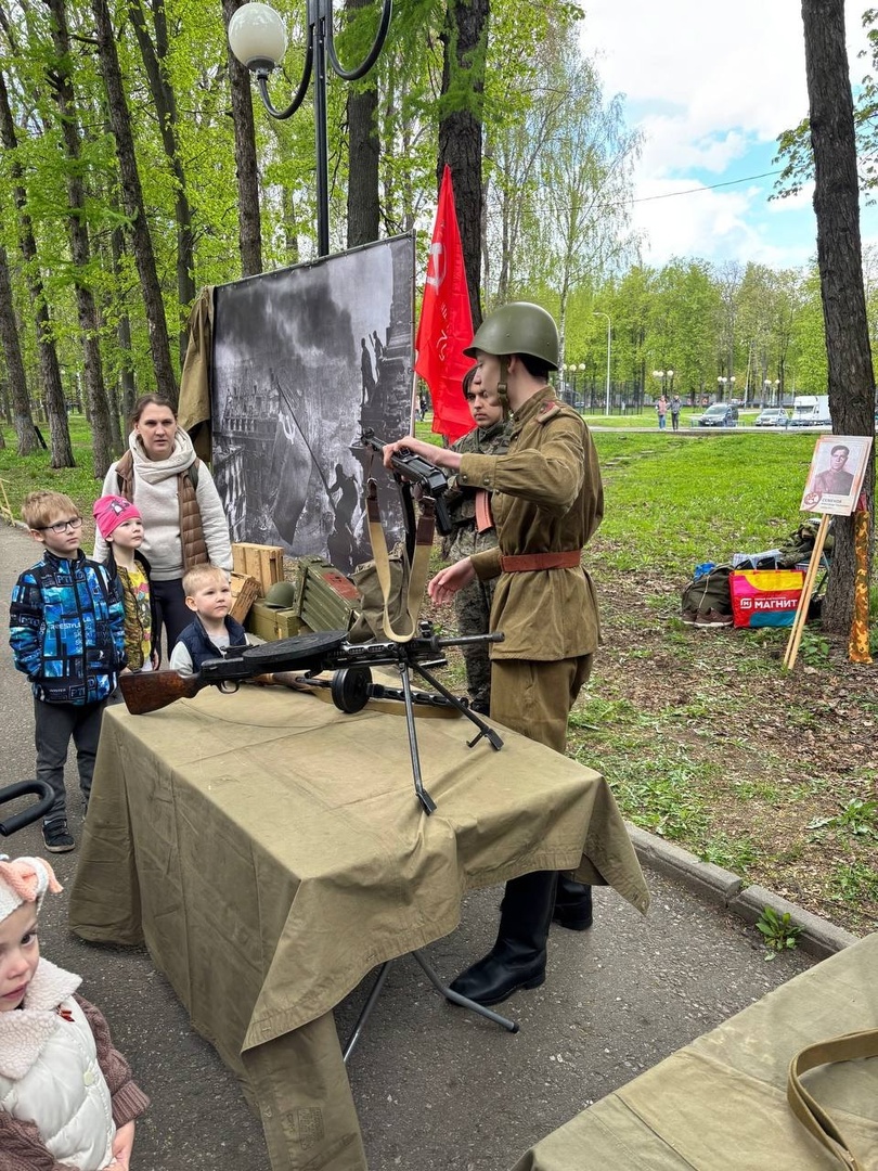 Сегодня в Центральном парке нашего города педагоги и учащиеся Дворца - проходят мастер-классы, выставка военного обмундирования и оружия, организована фотозона.